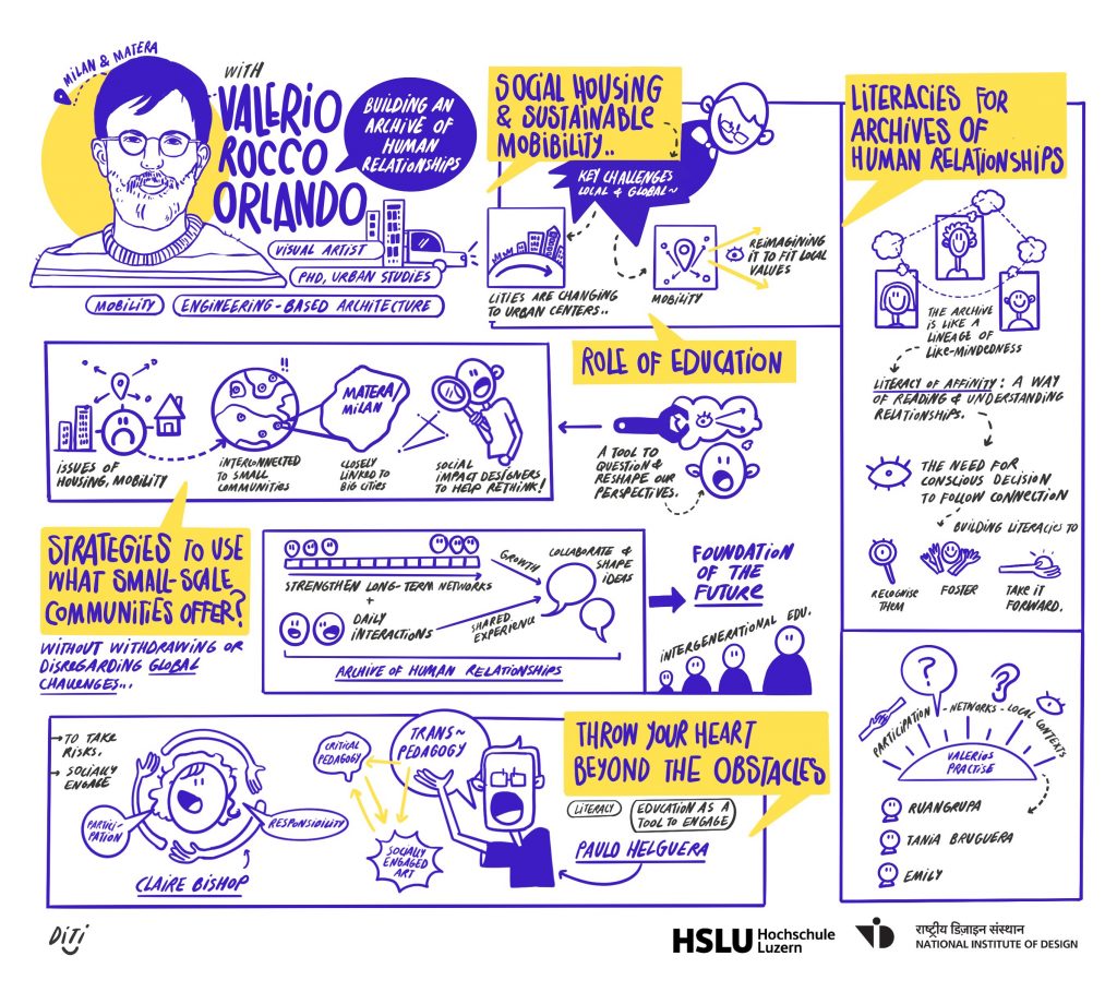 We must be courageous. It’s about realizing you’re not alone in that space—whether it’s eco-social design, socially engaged art, or something else. Small-scale communities form in classrooms, in cities like Matera or Lucerne, among students, alumni, and professors: Long-term relationships, all contributing to a shared archive of human relations.